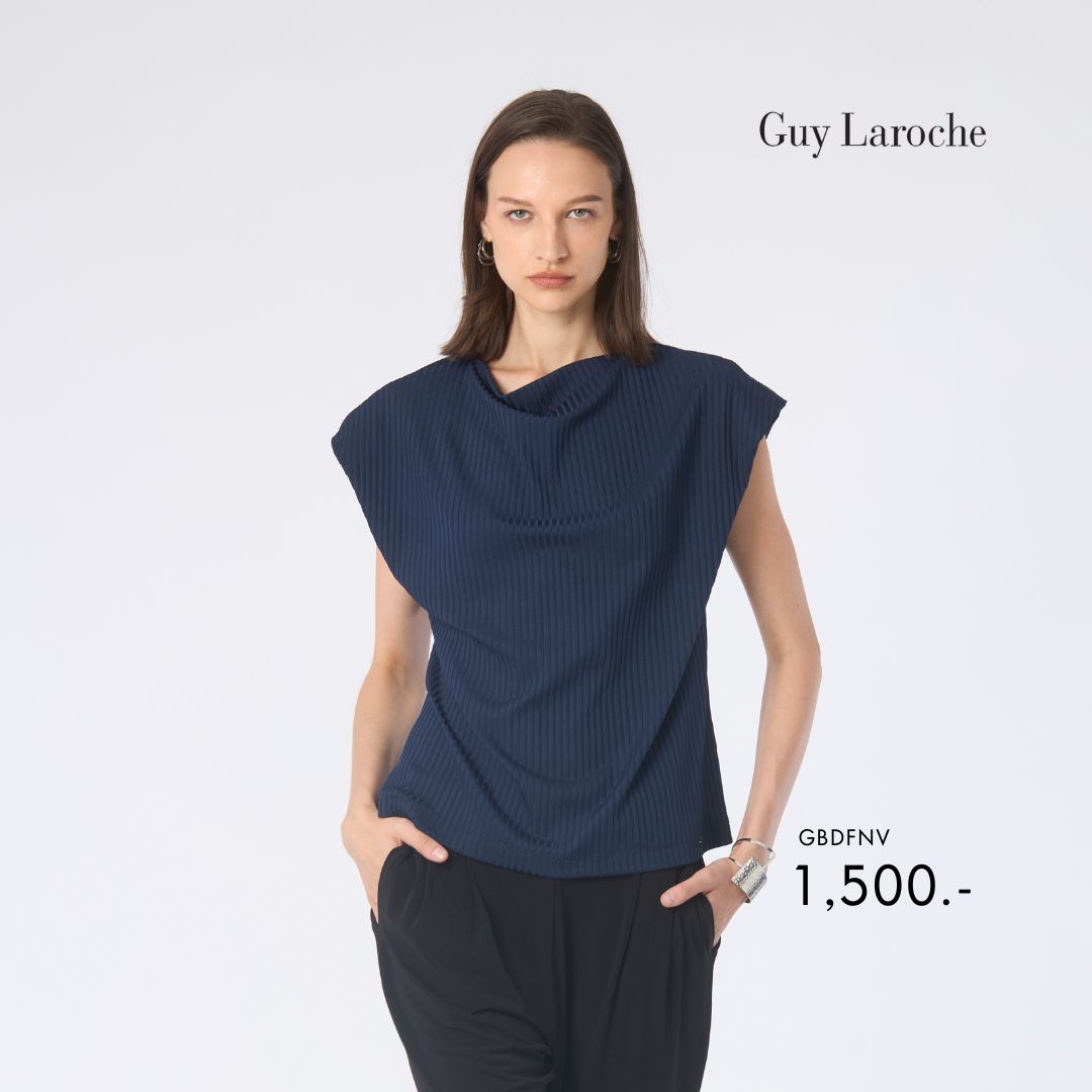 เสื้อผู้หญิงคอถ่วง Guy Laroche รุ่น Jersey Top สีกรมท่า ตัดเย็บจากผ้าเจอร์ซี่เนื้อนุ่ม ยืดหยุ่นดี ใส่สบายตลอดวัน มาพร้อมดีไซน์คอถ่วงสุดคลาสสิก ช่วยเพิ่มความเรียบหรู เหมาะกับทั้งวันทำงานและวันลำลอง เติมเสน่ห์ให้ทุกลุคของคุณ
