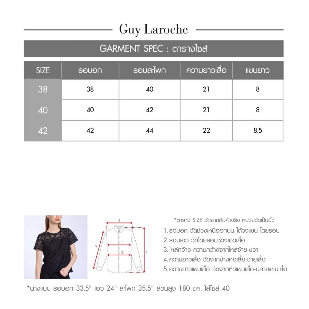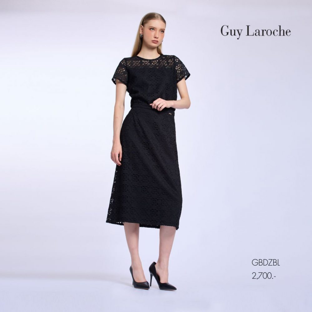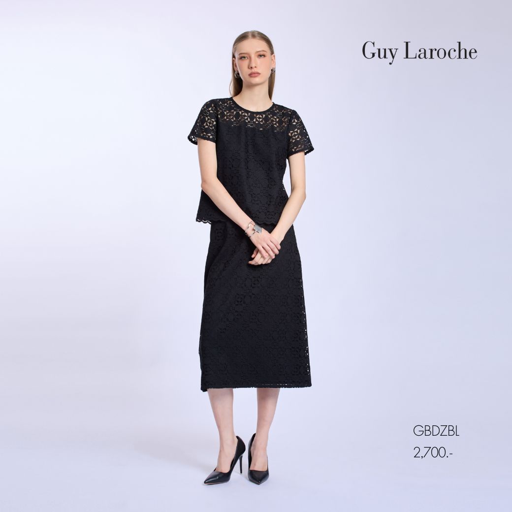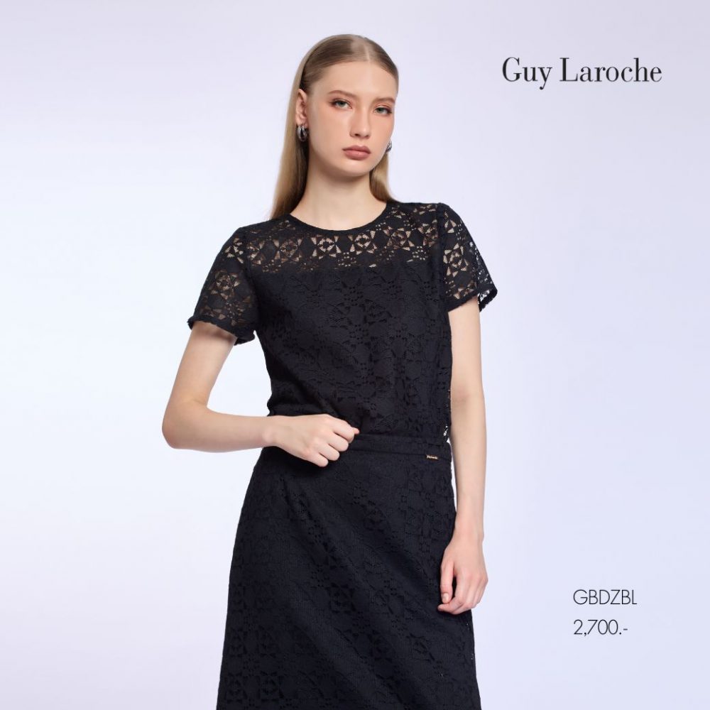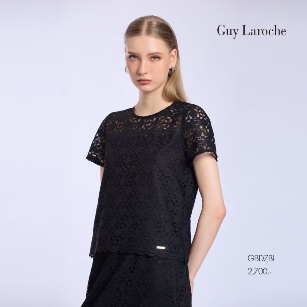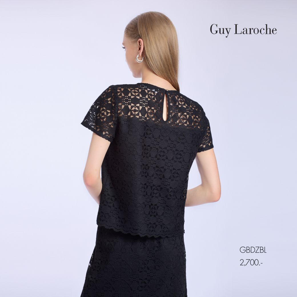 Guy Laroche Woman’s blouse Luxury lace | เสื้อผู้หญิง คอกลมแขนสั้น สีดำ GBDZBL
