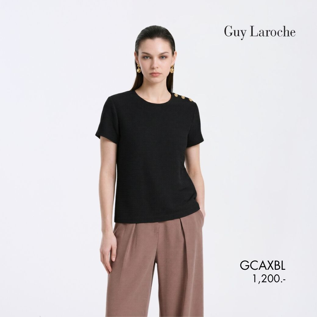 Guy Laroche Woman’s blouse top blouse Promfy | เสื้อยืด แขนสั้น สีดำ GCAXBL