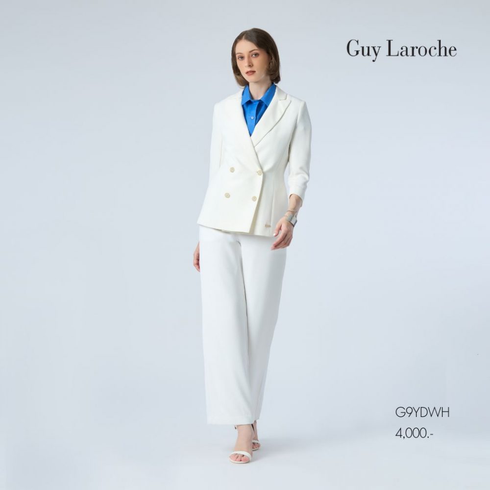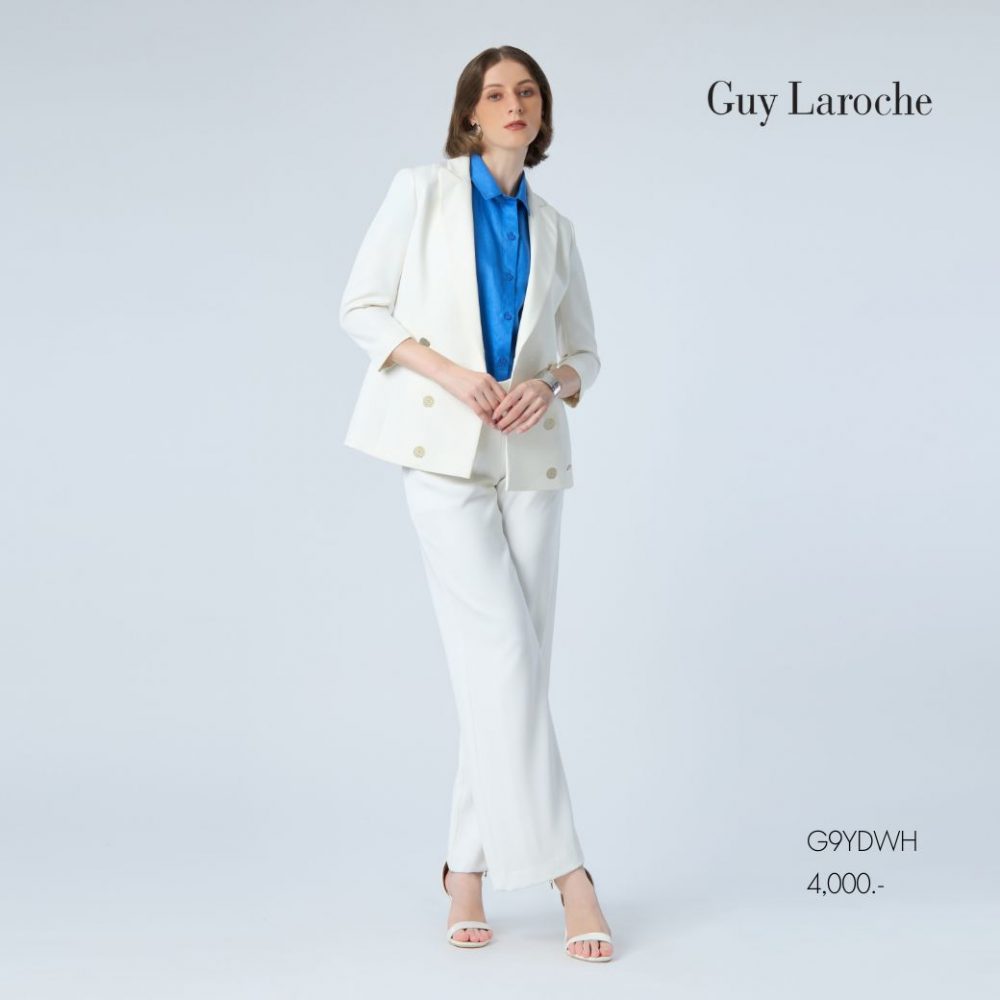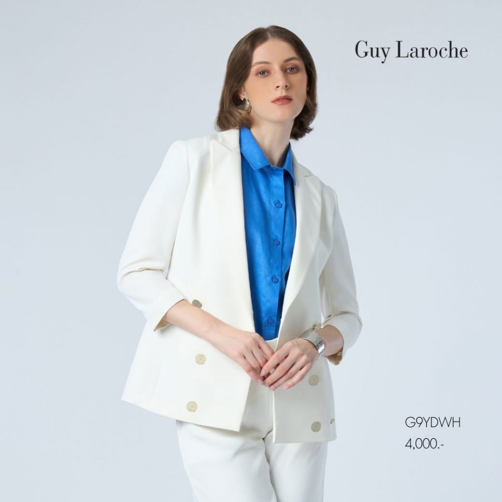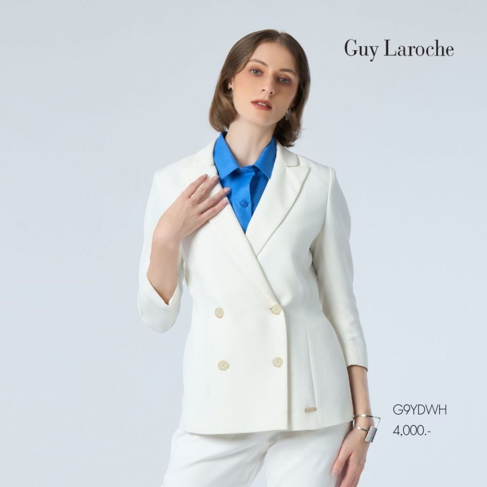 Guy Laroche woman’s jacket King Suiting | แจ็คเก็ตทำงานผู้หญิงทรงเข้ารูป แขนสามส่่วน แต่งกระดุม 4 เม็ด สีขาว G9YDWH