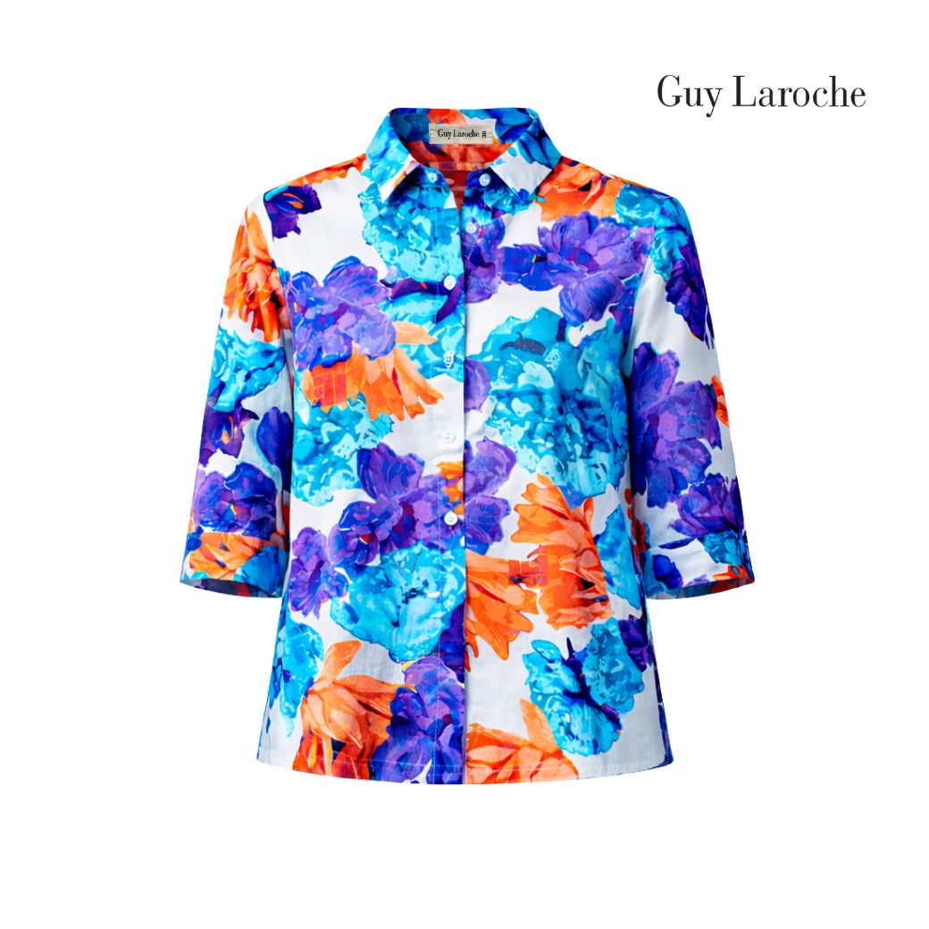 Guy Laroche Woman’s shirt Vintage bloom | เสื้อเชิ้ตผู้หญิงแขนสามส่วน สีน้ำเงิน GC9ZBU