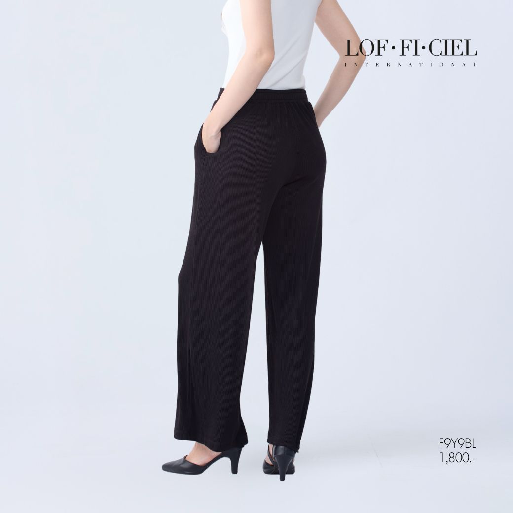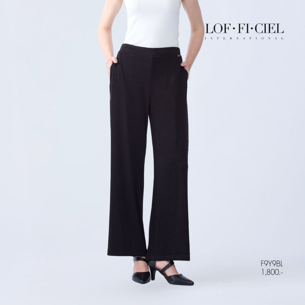 กางเกงผู้หญิง LOF-FI-CIE สีดำ ผลิตจากผ้าโพลีเอสเตอร์ผสมสแปนเด็กซ์ ให้สัมผัสเบา ยืดหยุ่น และคืนรูปดี ดีไซน์ทรง Straight Leg ขายาว ทรงตรง ขอบเอวด้านหน้าเรียบ เสริมเอวด้านหลังด้วยยางยืด สวมใส่สบาย เคลื่อนไหวคล่องตัว เหมาะสำหรับวันทำงาน ลุคธุรกิจ และการออกงานที่ต้องการความสุภาพทันสมัย