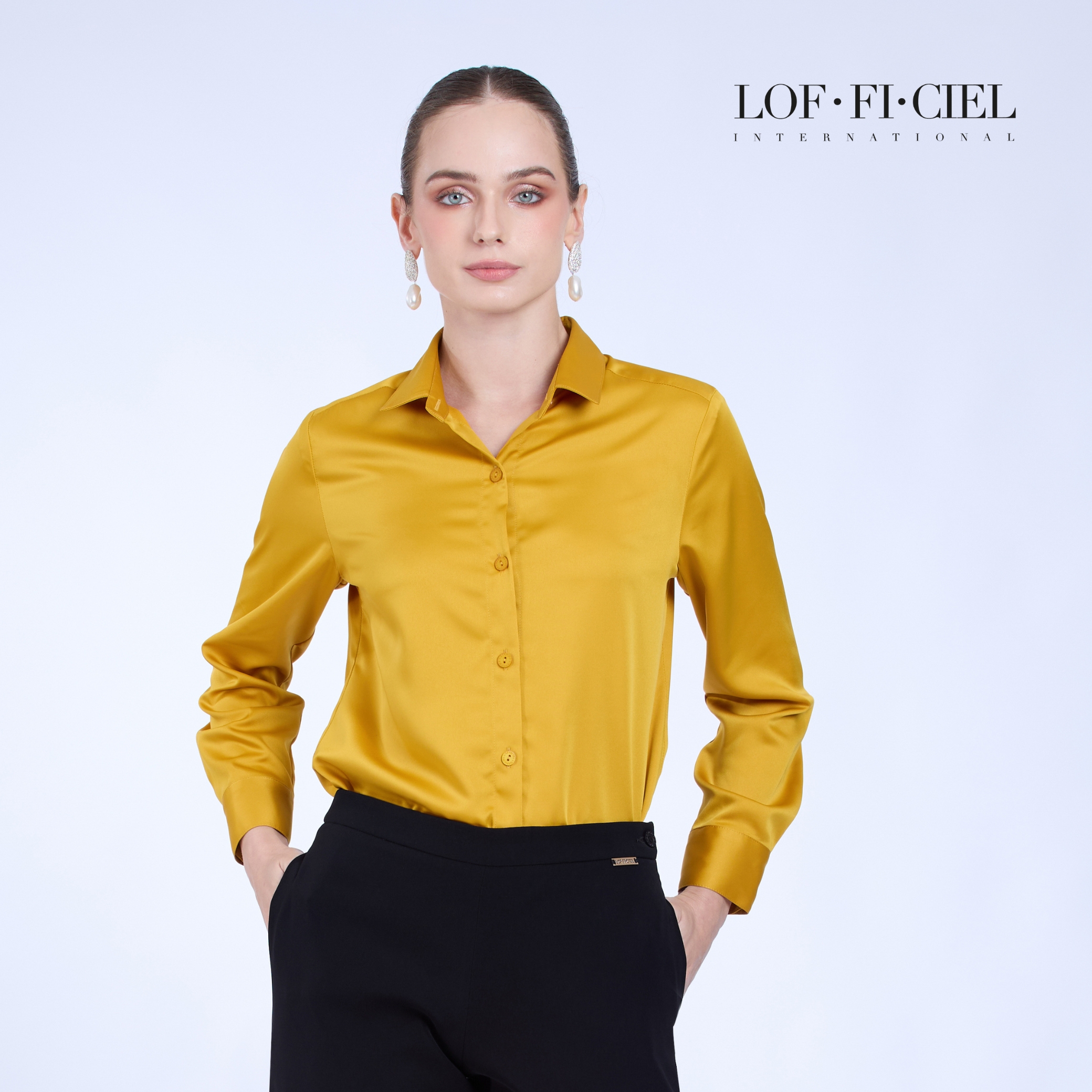 LOF-FI-CIEL Woman’s blouse Silky Satin | เสื้อเชิ้ตผู้หญิง แขนยาว ทรงหลวม สีทอง F9XBDY