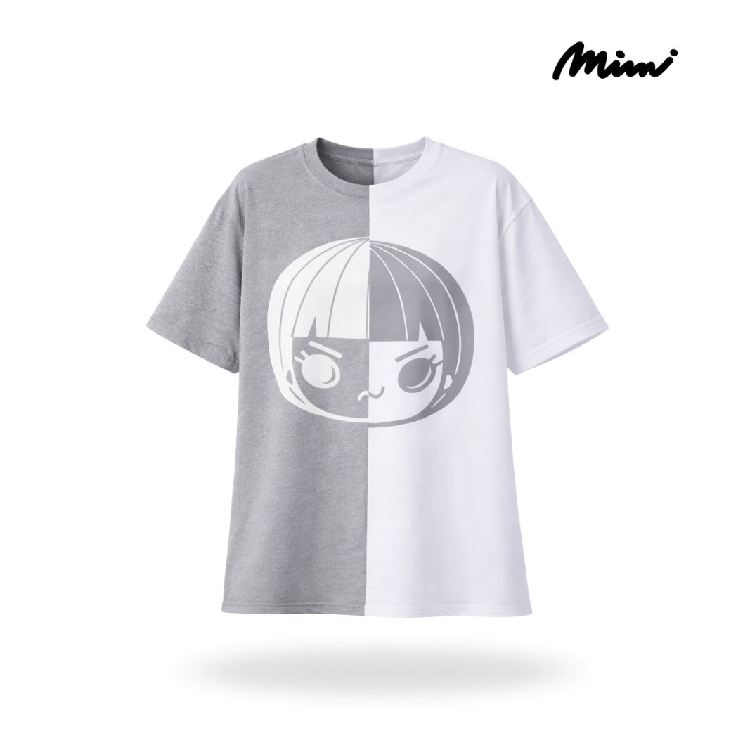 เสื้อยืด เสื้อยืดผู้หญิง Mimi เสื้อยืดคอกลมแขนสั้น 2 สีในตัวเดียว ขาว-เทา พิมพ์ลาย Mimi AT55WH