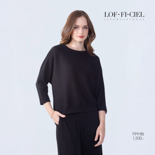 LOF-FI-CIEL Blouse Simple cord black | เสื้อผู้หญิงคอกลม แขนยาว สีดำ F9YHBL