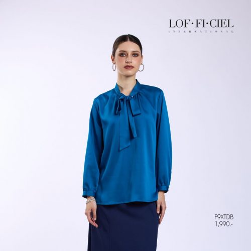 LOF-FI-CIEL Woman’s blouse Silk Satin | เสื้อผู้หญิง คอผูก แขนยาว ทรงหลวม สีน้ำเงิน F9XTDB