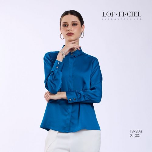 LOF-FI-CIEL Woman’s shirt Silk Satin | เสื้อเชิ้ตผู้หญิง แขนยาว สีน้ำเงิน F9XVDB